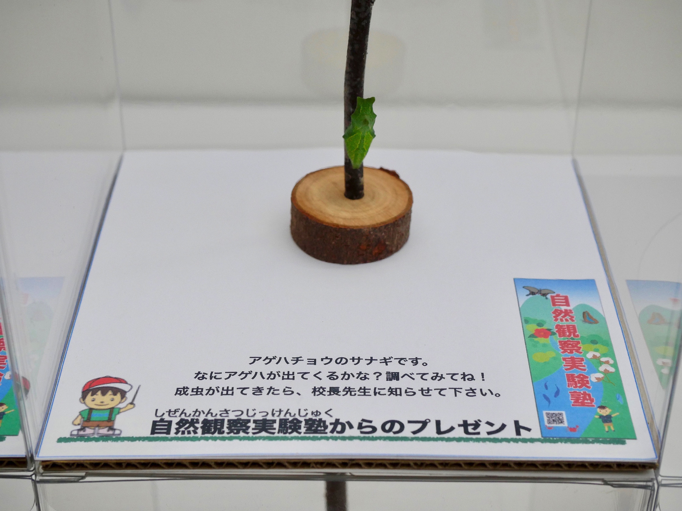 越冬中のアゲハの蛹を上郡町立山野里小学校プレゼントしました。