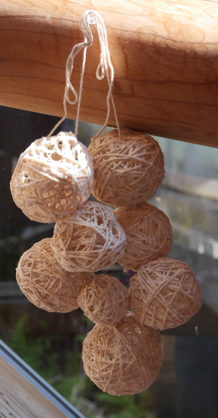下の作品については、『アイデアが面白いですね。吊り下げてモービルにもできますね。中に鈴を入て風鈴のようにするのもいいかも』、でした。
