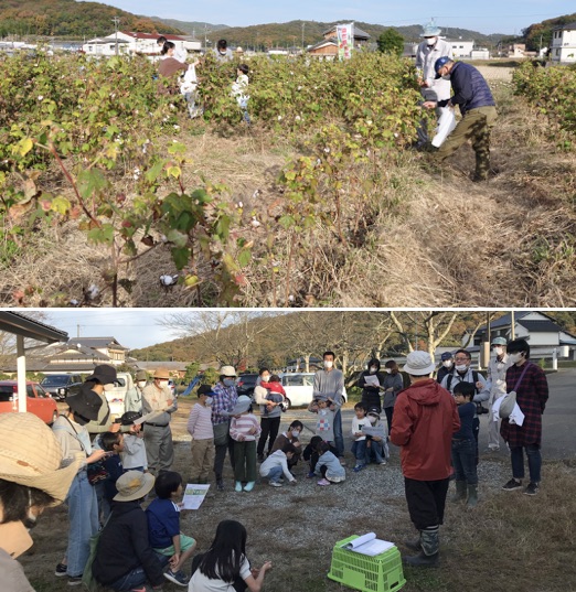 ワタ摘み体験 第3回 を相生市若狭町入野のワタ栽培田で行いました。