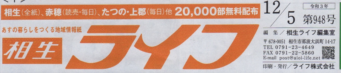 西播の広報誌 相生ライフに掲載されました。