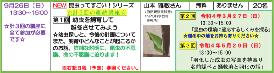 理科教室「昆虫ってすごい!」シリーズ 第1回 2021-09-26 (Sun)