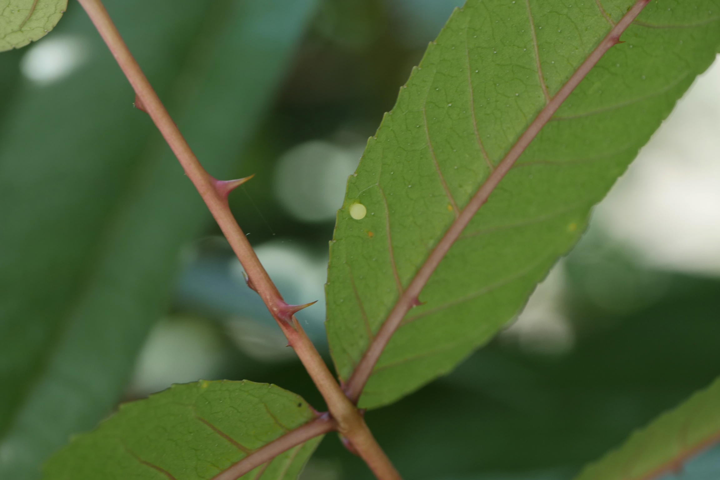 庭にいろいろなアゲハがやってきて卵から育つ姿を観察するために残してあるカラスザンショウの木(トゲだらけですぐに伐採されてしまう木のひとつ)にクロアゲハが産卵しました。カラスザンショウには数種のアゲハが産卵します。それも楽しみのひとつです。